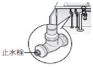 長期間使用しないときは、止水栓または配水部の元栓を閉める