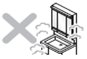 カウンターや洗面ボウル・引出し・扉・棚・取っ手・鏡フレームが外れまたは破損し、けがをするおそれがあります。