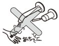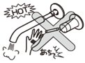 湯側で吐水すると高温の湯がでて、やけどするおそれがあります。