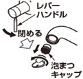 吐出口の掃除をする際は、レバーハンドルを閉めてから、泡沫キャップを外す。 また、スパウト、ホースが熱くなってないことを確認する。(TLG12304型の場合)