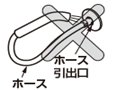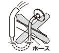ホースを水につけると、ホースを伝って水がキャビネット内に侵入し、家財などをぬらす財産損害発生のおそれがあります。