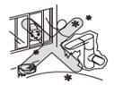 ホースやホース出口に水がかかると、ホースを伝って水がキャビネット内に侵入し、家財などをぬらす財産損害発生のおそれがあります。