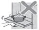スライド棚にはある熱いなべ、包丁などをのせない