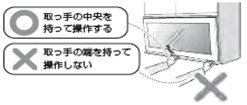 リフトアップ扉をお使いのときは、取っ手の中央をもって操作する