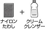 スポンジの硬い面(ナイロンたわし)に水またはクリームクレンザーの原液を付けて磨く