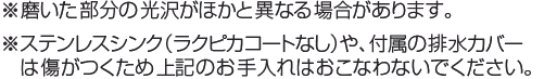 「中性」の表示のある洗剤をウレタンスポンジか柔らかい布につけて洗ってください。「酸性」・「アルカリ性」の表示のある洗剤およびたわし・粉末クレンザーなどはシンクや付属金具を傷付けますので絶対に使用しないでください。