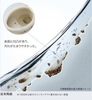 新開発の釉薬で、陶器表面を1000分の1ミリ単位でツルツルにし、その上イオンパワーで汚れをよせつけません。それが、汚れがつきにくく、落ちやすい理由です。