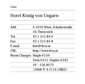 ウィーンのホテルはクラシックで立派なものが多いが、そんなものに連泊するわけにはいかないとばかり、シュテファン大寺院裏の小さなホテルにチェックイン。ホテル名は「ハンガリーの王」という意味。確かにオーストリアの皇帝がハンガリー王を兼任していたことはあるが。