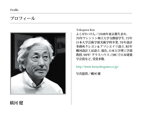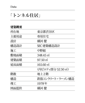 デビュー作という呼称がこれほどふさわしい作品も珍しい。自らの住む住宅であること。20代の若さで、3年におよぶ設計期間をもって練り上げられていること。そして何より、横河健という建築家の原点として今日への軌跡を指し示し、輝きを発しつづけていることがその理由だ。