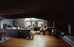 興味深いのは外壁と、内部の間仕切り壁に対する考え方だ。通常われわれは外壁は確固としたもので、間仕切り壁はいつでも取り払える一時しのぎなものととらえがちだが、室伏は逆に、住まいの外郭をなす壁は都市の環境に応じて柔軟につくればよいのであって、むしろ内部空間における壁こそが重要だと述べている。「その空間の内に屹立する壁の存在そのものこそが、犯されざる自由な個の意識を醸成するものと考えるからだ」(*1)と。