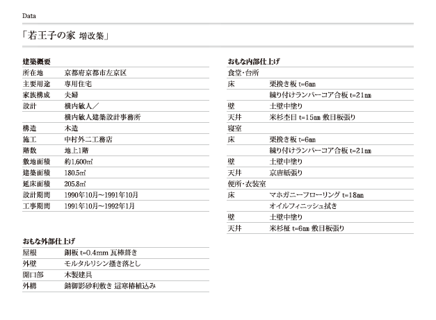 明治中期につくられた数寄屋建築の増改築。横内さんの最初の仕事は、まさに日本的なものだった。古いものから学びとりながらも、現代の建築文化と暮らしとの両立を目指したデビュー作になった。