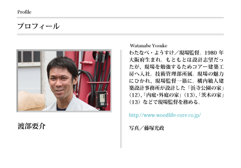 横内さんはけっこう職人さんの話をよく聞いて、意見を反映してくれはるんで、やりやすいです。本来は監督である僕があいだに入るべきなんでしょうけど、図面の細かいディテールなどは直接話したほうがわかりやすいし、横内先生はこちらを緊張させずに一緒に話ができる人なんで、職人も同席して打ち合わせできる場を積極的に設けるようにしています。