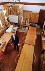 たとえば、4寸角の無垢のヒノキと集成材の柱を用意して、曲げ荷重をかけ、部材が破断する最大点応力を計測。集成材は無垢材の6割程度の強さしかないことを明らかにする。ここで注目したいのは、無垢材と集成材のどちらが強いかといった実験結果ではなく、神﨑さんの「実験してみよう」という発想だ。問題意識がなければ、そもそも調べようという発想は出てこない。続編の著書のなかで神﨑さんは、建て主から「こんな木は弱いからダメだ」といわれたことが実験をしようと思ったきっかけと述べているのだが、その根底には建築界の常識や思い込みにしばられない自由な発想がありそうだ。それは、神﨑さんが、建築学科などの教育機関ではなく、すべて現場を通じて建築を学んだことと無縁ではないだろう。