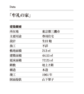 今回訪れた「牟礼の家」は61年につくられた生田自身の家である。迎えてくれた娘の翠子さんによると、できた当時、あたり一面は麦畑で、武蔵野の面影がまだ残っていたという。