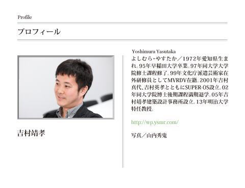 - 吉村靖孝 最初に誤解のないように言っておくと、「CCハウス」というのは、僕が設計した家型の案だけではなく、クリエイティブ・コモンズ(CC)を用いて図面を汎用、販売するプロジェクト全体の名前のつもりです。だから、「家の家」の図面を販売しても「CCハウス」ですし、僕が提案した連棟の家型は、ひとつの例にすぎないのです。ただ、あの展覧会でお見せした提案が家型であったことには、後から考えると、このプロジェクトにとって重要な意味があったと思っています。近代の分業化の過程で、住むことと建てることが分離してしまっている状況があると思います。住まい手がつくり手になれなくなっている。そうした問題意識のもとで、建築家とつくる一品生産の住宅と、商品化住宅の中間として、「CCハウス」を位置付けたかったのです。つまり、最終的には、図面はプロが配布するけれど、素人の住まい手でも自分で住宅が建てられるようにしていきたい、というもくろみがあります。先ほど、島田さんが切妻、つまり家型は技術的に簡単に用いることができると言いましたが、僕もそれには同感で、「CCハウス」でも、住まい手がつくるからには簡単な技術でできるものを提供しなくてはならないと考え、家型を選択しました。家型は形態だけではなく、生産面でもプリミティブなものだと思っています。