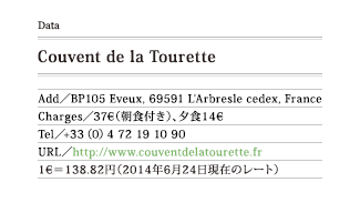 美しい新緑の小高い丘の上にその建物が見えてきた。あれだ、ついに来た。ドミニコ会から依頼された修道院。極限のヒューマンスケールをどう料理したかを見たかったのだ。ル・コルビュジエ(*1)73歳の頃の作。