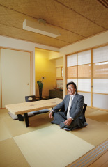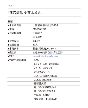 京都と大阪のほぼ中間にある高槻市。淀川と芥川のあいだの細い水路に架かる橋を渡って小林工務店にアプローチすると、右手にショールーム「もくもく堂」が立っている。創業者で初代社長の小林重博氏の発案による、釘・金物を使わない伝統構法による木組みのこの建物は、小林工務店の技術力を結集して建てられた。「お客さんは、ほとんどの方がここに来てくれるので、打ち合わせはここでやることが多いんですよ」と現社長の二見辰伯さん。もくもく堂は、年間30〜40棟の新築住宅を受注するという同社の魅力の一端となっているのである。