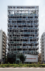 今年2月、東京・南青山に今までありそうでなかった中規模オフィスビルが誕生した。青山通りに面した11階建ての「新青山東急ビル」は、1〜2階が店舗、3階以上が賃貸オフィスという構成だが、9層のオフィス階の道路側と反対側の両面に、各テナントが自由に使えるバルコニーが付いているのだ。大小の格子をランダムに組んだ青山通り側のファサードからはどこにバルコニーがあるのかわかりづらいが、よく見ると格子の一部は横一列に連続してガラス張りになっており、それが各階のバルコニーの手すりを兼ねている。