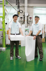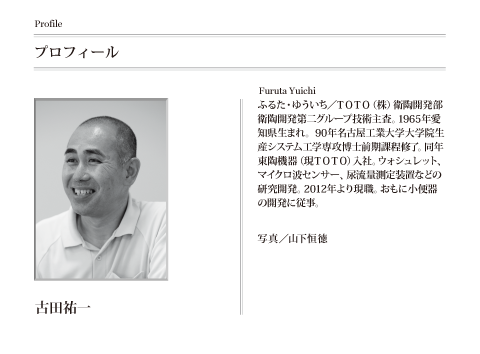 - 古田 原点とはいいにくいですが(笑)。一番初めは小便器、こちらがスタートでした。それをウォシュレットのチームがよりよい形にしてくれて、再びこちらに戻ってきたわけです。