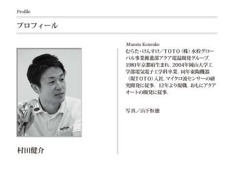 - 古田 私たちが最初に「次亜塩素酸」を使った小便器を開発したときは、排水管につまる尿石の問題が十分に解決しなかったんです。その後、銀イオンを使った電解水を開発し、排水管側の尿石抑制への対応も向上してきました。