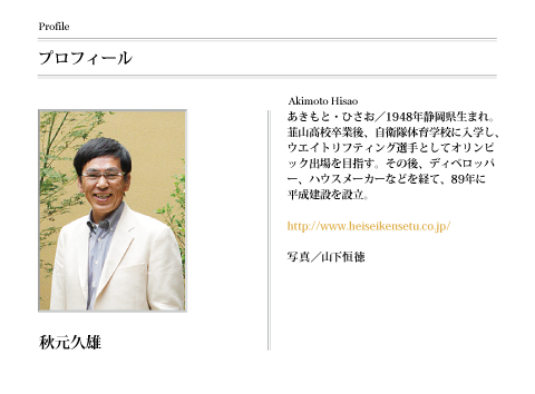 好況に沸く建築業界で、職人不足があらためて浮き彫りにされている。だが職人不足、後継者不足は、何年も前から指摘されていたことで、突然降って湧いた問題ではない。220人の職人を抱え、「建築工程の内製化」に取り組む平成建設に、ここ数年メディアが群がるのは、わかっていても誰もやらなかったこと、できなかったことに正面から立ち向かって、成功しているからだろう。たったひとりからスタートし、今や550人の社員を抱える企業へと成長した平成建設、そのトップである秋元久雄さんに注目が集まる所以である。
